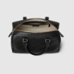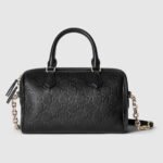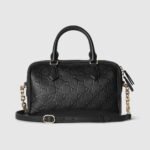 The new GG Emblem collection reinterprets the House??s history of elegance and craftsmanship. This small top handle bag has two zippers for easy access, and a light gold-toned chain and leather shoulder strap for crossbody wear.