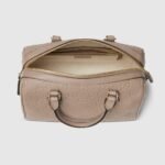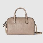 The new GG Emblem collection reinterprets the House??s history of elegance and craftsmanship. This small top handle bag has two zippers for easy access, and a light gold-toned chain and leather shoulder strap for crossbody wear.
