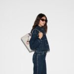 Adjustable leather shoulder strap with 20.3″ – 22.4″ drop; length: 41″ – 44.9″