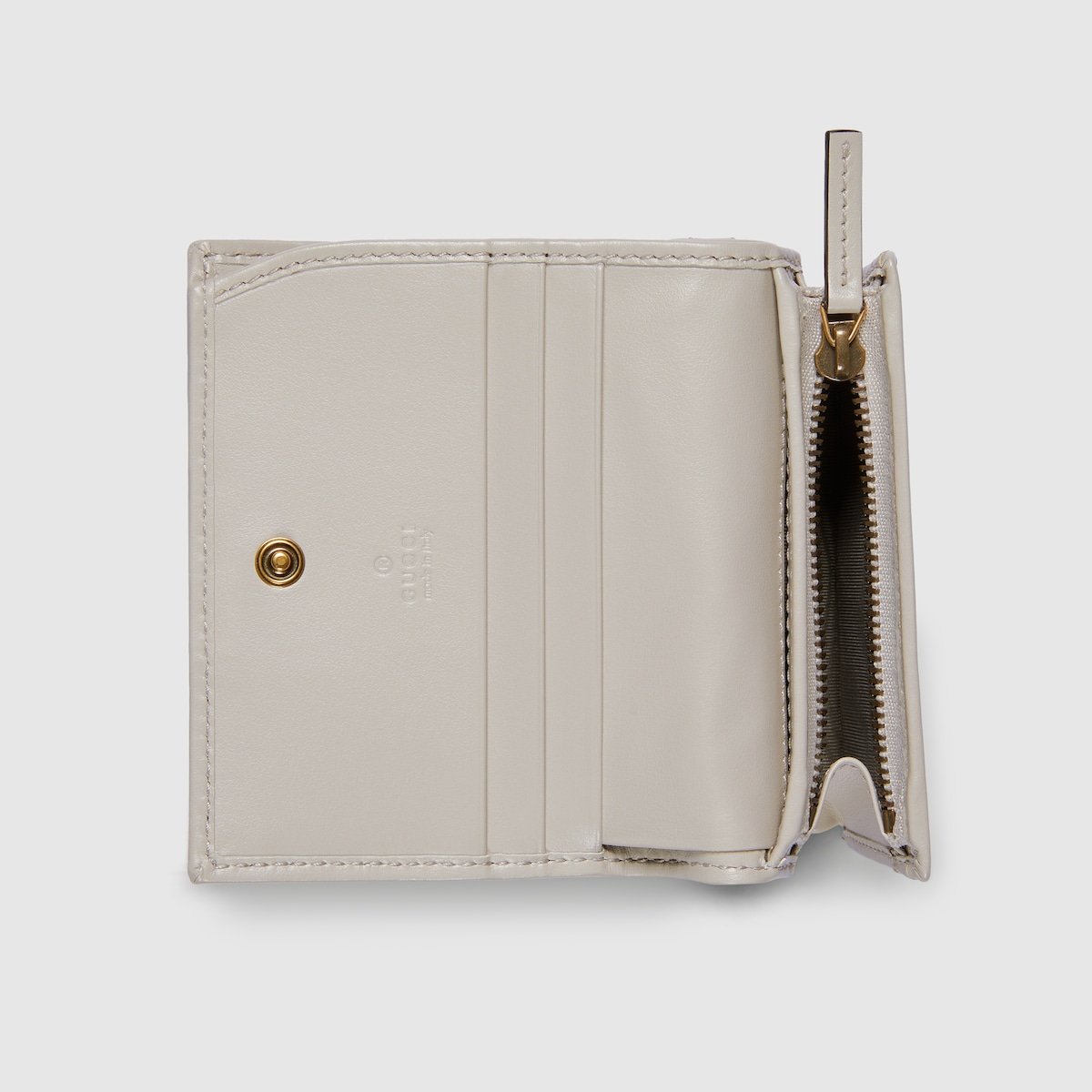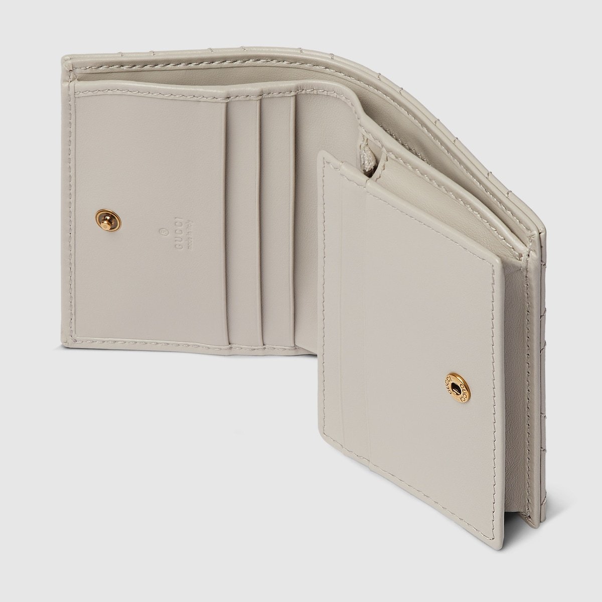 The GG Marmont collection is defined by the emblematic Double G hardware??a contemporary take on a Gucci archival belt buckle from the ’70s that has become a hallmark of the House. This card case wallet is crafted with the same matelass?? leather as the bags from the rest of the collection.