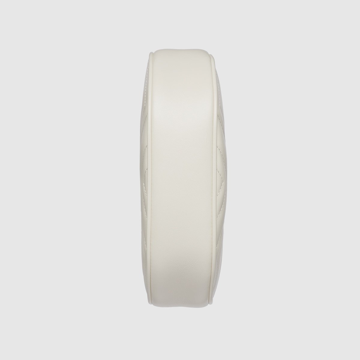 With a crescent silhouette and textured white leather, this mini bag has a defined retro feel. Each collection is a journey through different decades and eras, combining vintage elements with archival codes or contemporary details to create new designs that exist outside of space and time. The petite accessory reflects this fascination with the past, a concept that runs throughout the world of GG Marmont.
