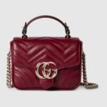 The GG Marmont collection is ready for early fall with a new silhouette in classic colours. This handbag is made from Gucci Rosso Ancora quilted V-shaped leather and features a light gold-toned chain shoulder strap with a detachable toggle. The magnetic flap closure is embellished with a Double G, which makes the whole design more attractive.