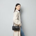 Sliding chain strap can be worn as a shoulder strap with 21.6″ drop or can be worn as a top handle with 11.8″ drop.
