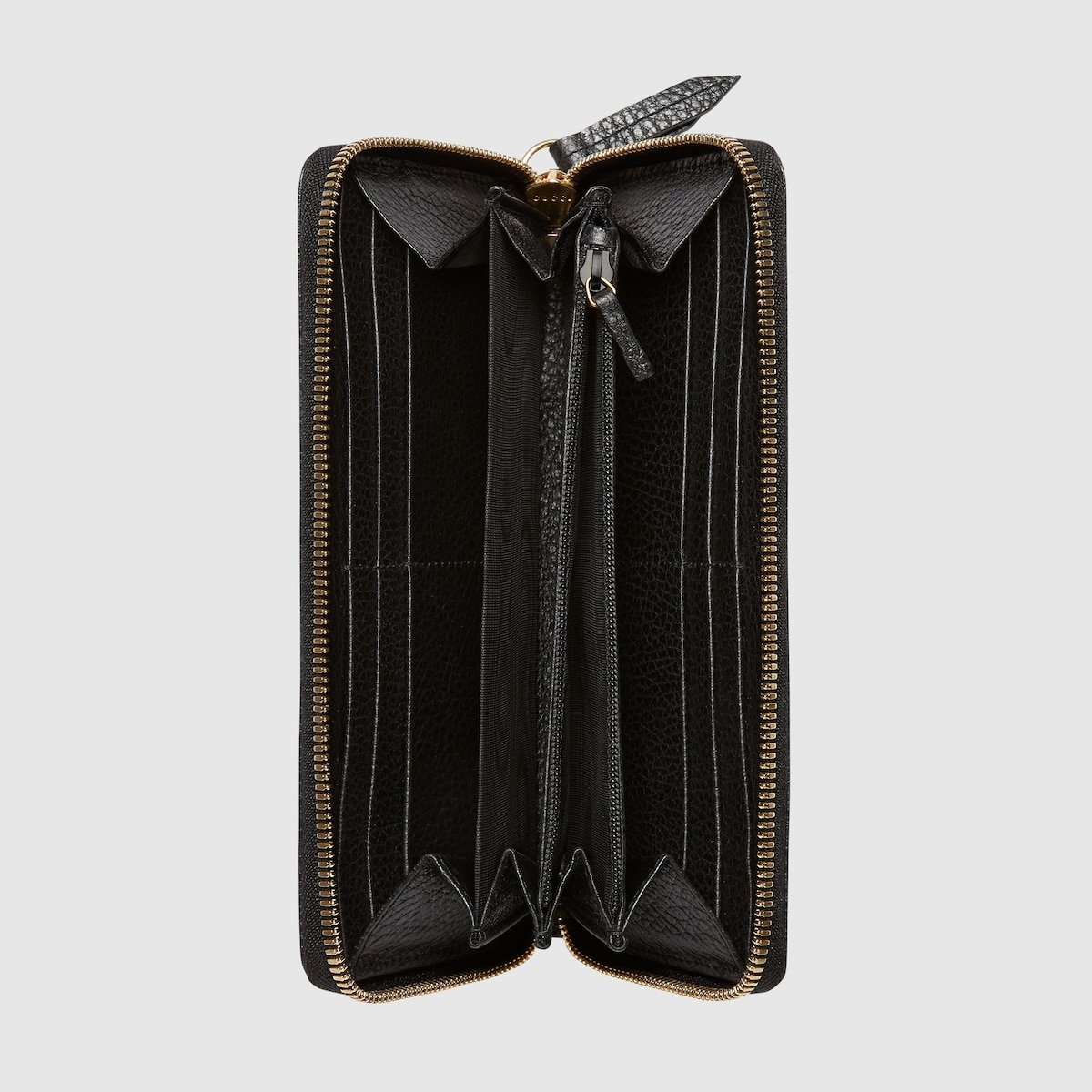 A zip around wallet with small Double G metal detail. Made in textured leather.