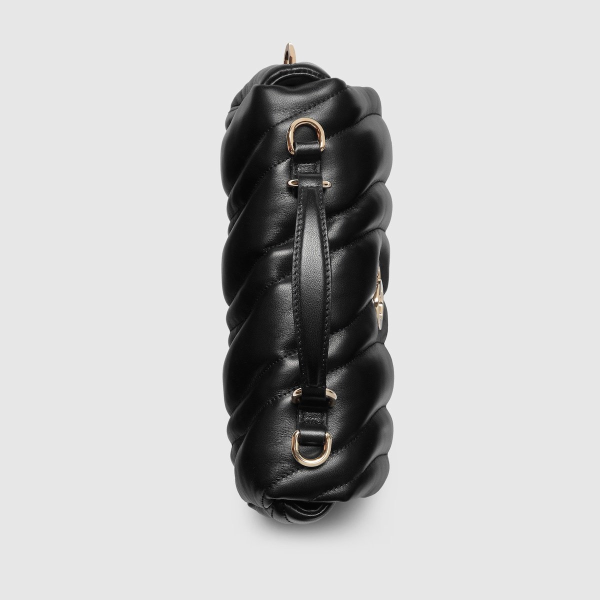 The GG Milano top handle bag debuted at the Fall Winter 2024 fashion show during Milan Fashion Week, paying tribute to the city which inspired the design. It features a new Double G hardware, and the puffy leather has a soft and silky quilted pattern. The chain strap allows the bag to be worn crossybody or on the shoulder.