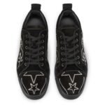 The timeless Giddy Vieira Strass sneaker has an irresistibly bold design. This Maison Christian Louboutin model sits on a black lug sole and is crafted in black veau velours with grosgrain trim. It is inspired by the Wild West and adorned with shimmering strass evoking the patterns seen on cowboy boots, while offering suppleness to your feet.