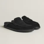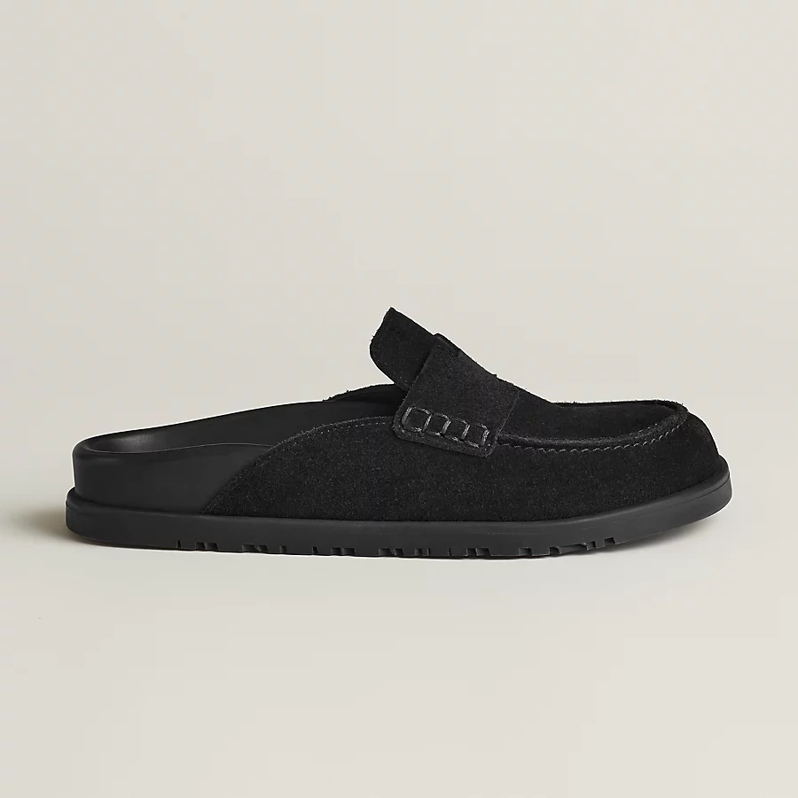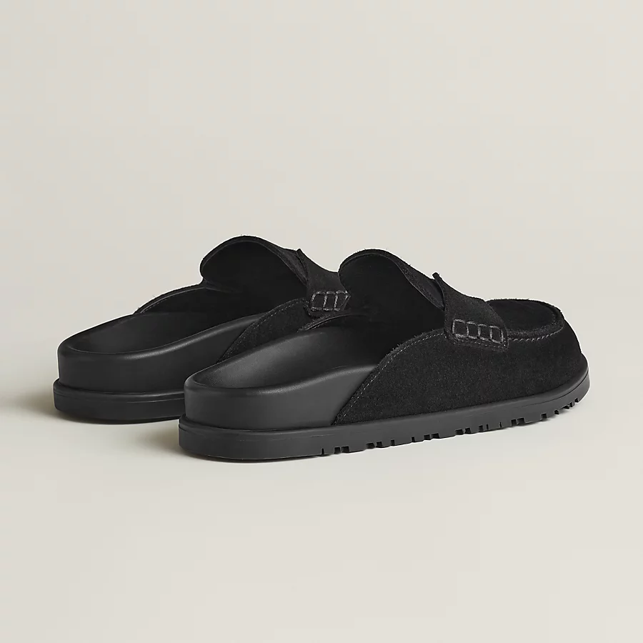 Mule in suede calfskin with iconic ‘H’ cut-out detail.