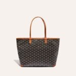 Goyard Goyardine Artois Tote PM Black Canvas & Brown Chevroches Calfskin Palladium Hardware