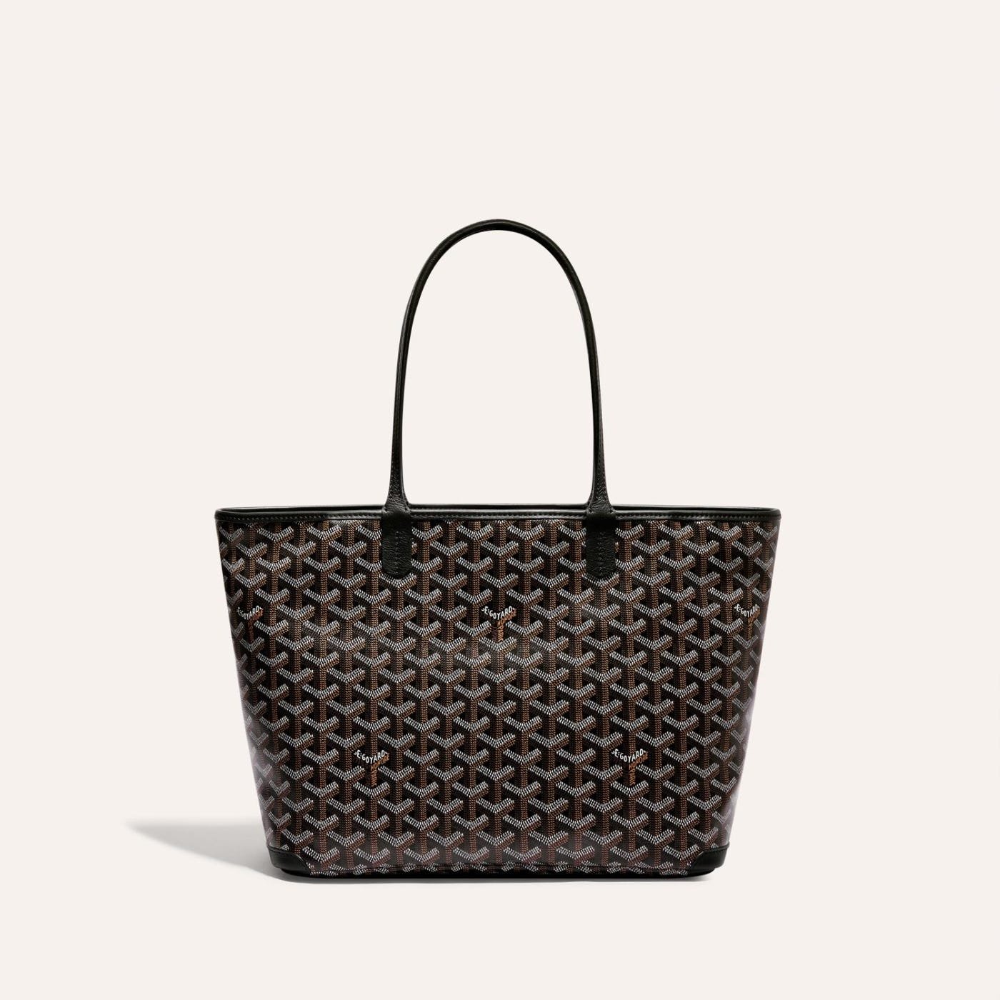 Goyard Goyardine Artois Tote PM Black Canvas & Chevroches Calfskin Palladium Hardware