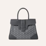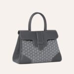 This soft Saigon handbag is crafted in grey Goyardine coated canvas and Chevroches calfskin with palladium hardware and contrast stitching, and features two double rolled top handles, signature Saigon leather shoulder strap and loop closure, and a flap top with an opening to pass the handles through.