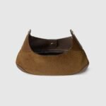 Introducing the Gucci B, which draws inspiration from a 1950s archival style. This shoulder bag, embodying the essence of its mid-20th century design origins, is crafted from soft suede and has an additional shoulder strap for crossbody wear.