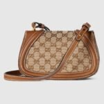 The new Gucci Blondie bag, whose distinctive logo first appeared in the House??s collections in the early 1970s, weaves together past and present in a fusion of nostalgia and modernity. This mini shoulder bag with an adjustable shoulder strap is crafted from beige and dark brown Original GG canvas.