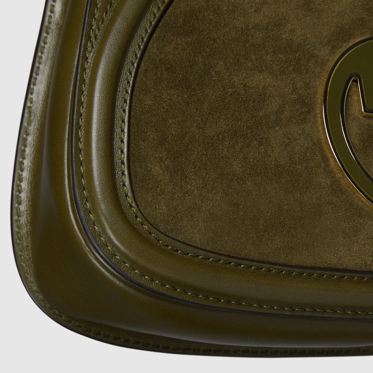 The new Gucci Blondie bag, whose distinctive logo first appeared in the House??s collections in the early 1970s, weaves together past and present in a fusion of nostalgia and modernity. This small shoulder bag is crafted from dark green suede, featuring the House’s round symbol in enamel. The gold-toned chain and leather strap can be worn on the shoulder or crossbody.