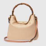 Combining recognizable elements of the House, the Gucci Diana is defined by its bamboo handles and Double G hardware. Crafted from light beige leather, the soft structure of this variation on the staple accessory is further accentuated by a pastel colorway and tonal trims.