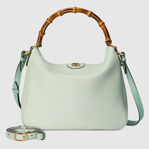 Combining recognizable elements of the House, the Gucci Diana is defined by its bamboo handles and Double G hardware. Crafted from pale green leather, the soft structure of this variation on the staple accessory is further accentuated by a pastel colorway and tonal trims.