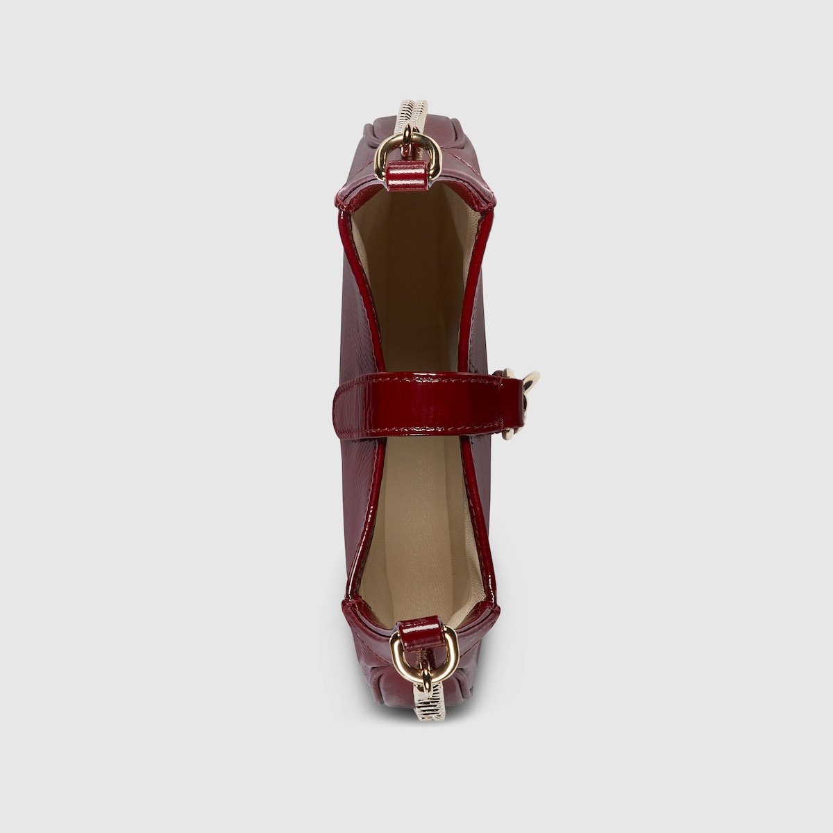 Gucci Rosso Ancora patent leather, defined by a glossy and textured effect