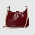 The Jackie Notte embodies the self-confidence of the iconic Jackie line, with a new silhouette and subtle details that make it perfect for nighttime wear. It is crafted from fine leather, highlighting a hook closure and light gold-toned Gucci lettering chain strap, which give this Jackie Notte mini bag in Gucci Rosso Ancora a unique touch.