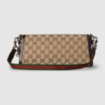 Gucci Luce, which translates to light in Italian, radiates playful charm and boundless joy. The Original GG canvas lends itself to this small shoulder bag design. The beige and ebony motif is accentuated by dark brown leather trim and light gold-toned hardware. The green and red stripe Web is adjustable and detachable through a leather loop and hardware ring on the sides, giving the bag additional function and structure.