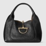 The new Gucci Softbit shoulder bag reimagines the House??s signature hardware as an oversized half Horsebit. It is both aesthetic and functional as the magnetic closure of the relaxed silhouette, crafted from supple, grainy leather with a rich texture. Available in two sizes.