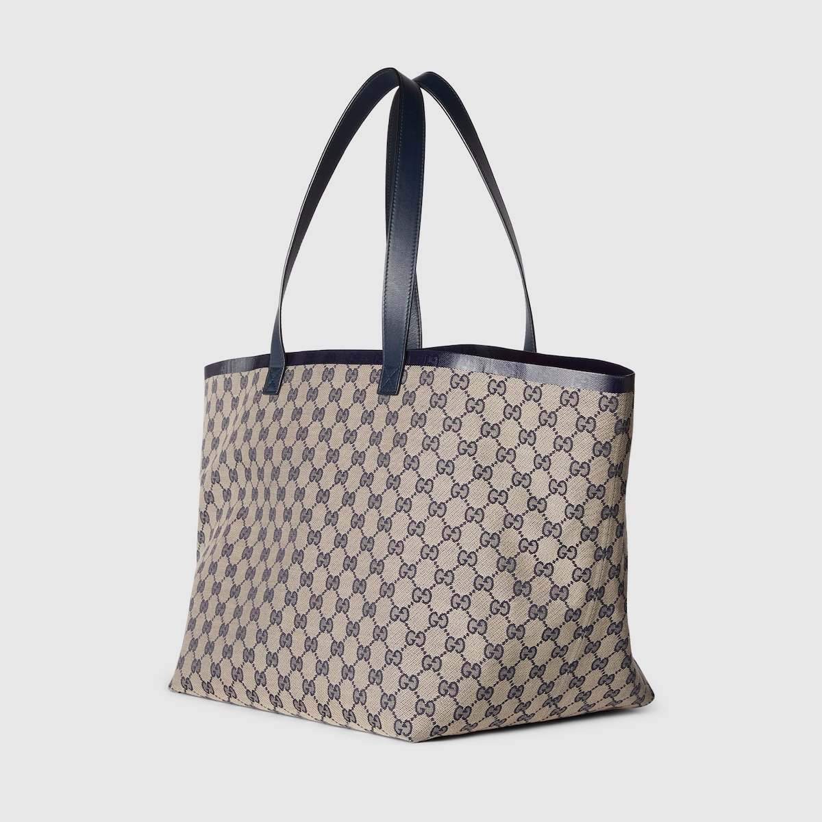 The Gucci Totissima blends the word ‘tote?? with the Italian superlative ??issima??, or ??the most??, emphasizing the bag’s functionality and enduring style. The internal Web trim undergoes meticulous crafting as the seams are entirely hidden on this medium tote bag in beige and blue.