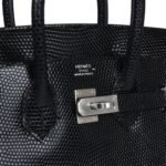 Hermes Birkin 25 Black Shiny Varanus Niloticus Lizard Palladium Hardware