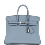 Hermes Birkin 25 Bleu Lin Swift Palladium Hardware