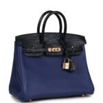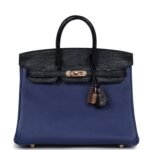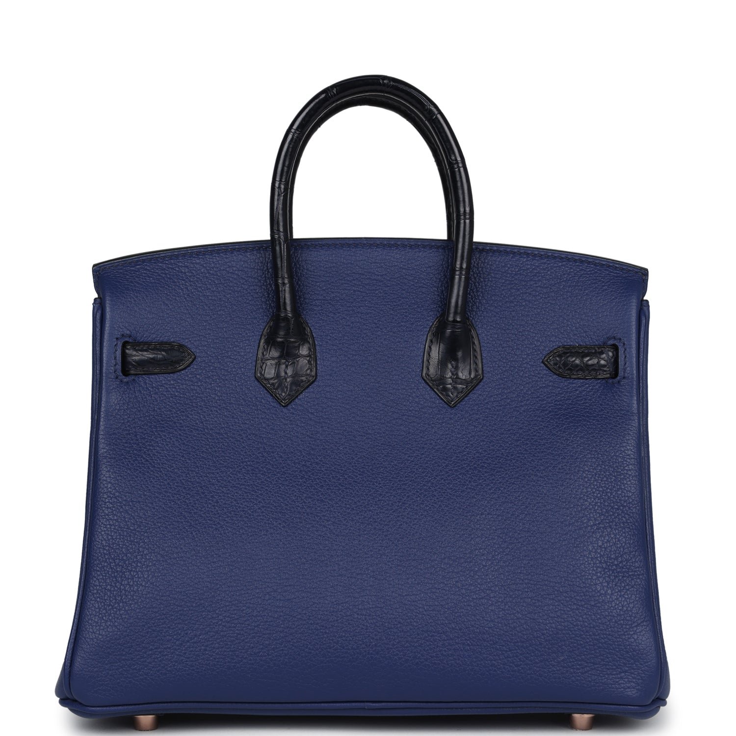 Hermes Birkin 25 Bleu Saphir Taurillion Novillo and Bleu Marine Matte Alligator Touch Rose Gold Hardware