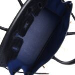 The interior is lined with Bleu Saphir Chevre and has one zip pocket with an Hermès engraved zipper pull and an open pocket on the opposite side.