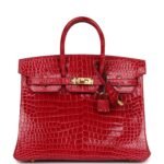Hermes Birkin 25 Braise Shiny Porosus Crocodile Gold Hardware