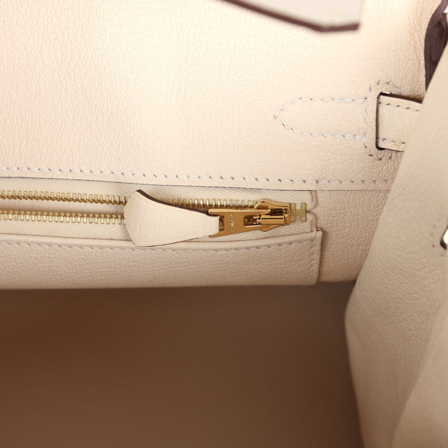 The interior is lined with Nata chevre and has a zip pocket with an Hermès engraved zipper pull and an open pocket on the opposite side.