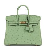 Hermes Birkin 25 Vert Criquet Ostrich Gold Hardware