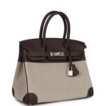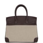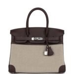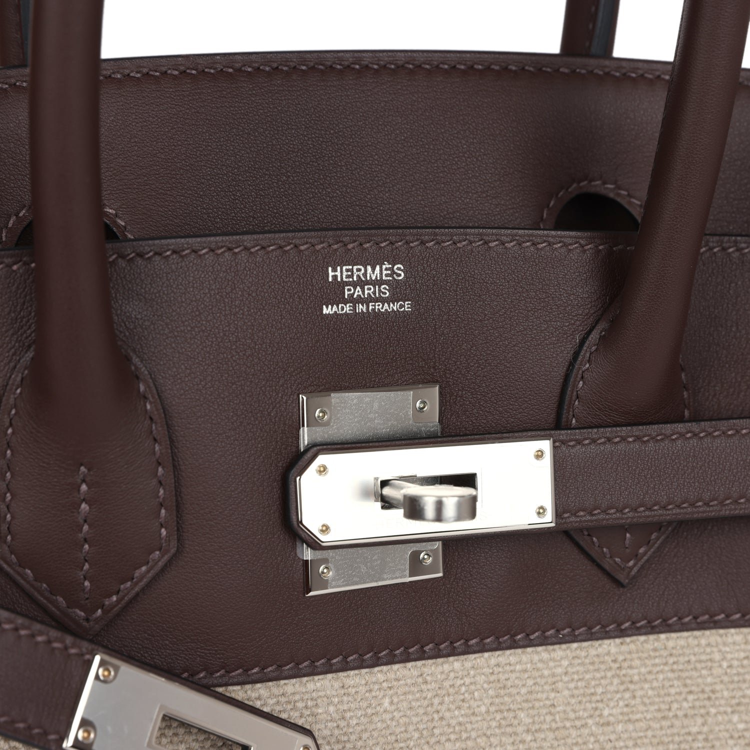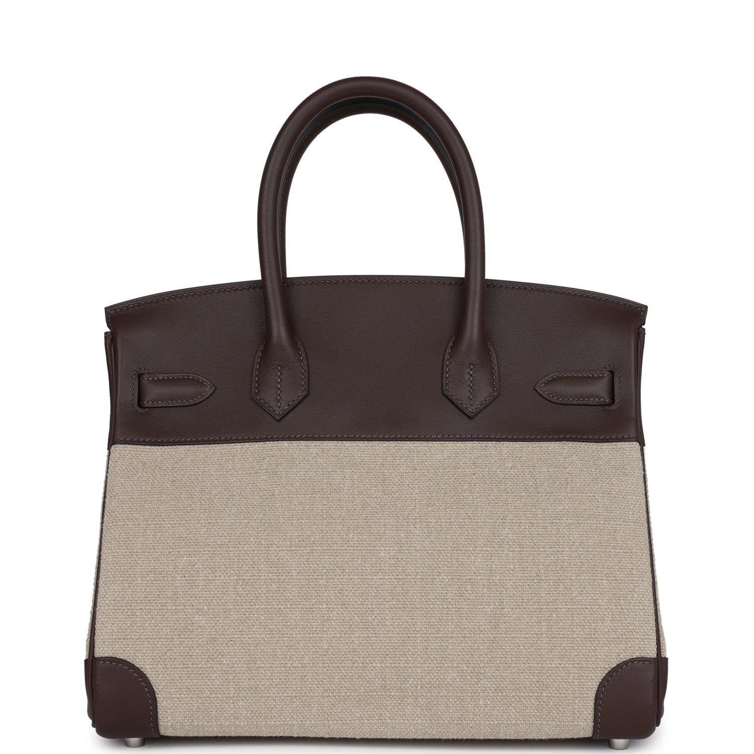Hermes Birkin 30 Bivouac Ficelle Canvas and Moka Swift Palladium Hardware