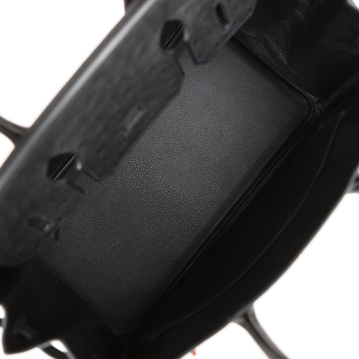 The interior is lined withblack chevre and has a zip pocket with an Hermès engraved zipper pull and an open pocket on the opposite side.