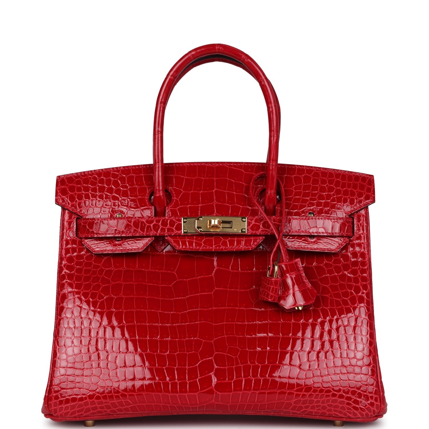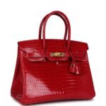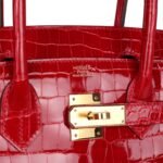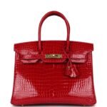 Hermes Birkin 30 Braise Shiny Porosus Crocodile Gold Hardware