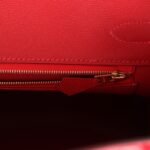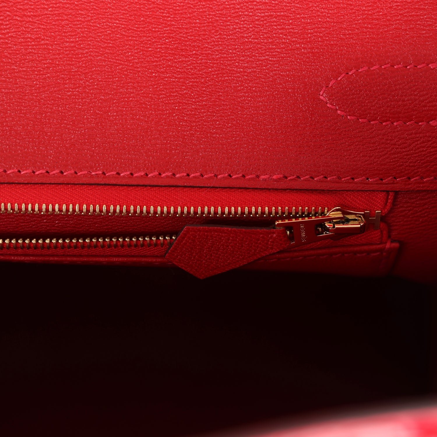 The interior is lined with Braise chevre and has one zip pocket with an Hermès engraved zipper pull and an open pocket on the opposite side.