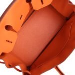 The interior is lined withOrange chevre and has one zip pocket with an Hermès engraved zipper pull and an open pocket on the opposite side.