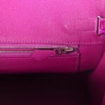 The interior is lined in Rose Pourpre chevre leather and has a zip pocket with Hermès engraved pull; pocket on opposite side.