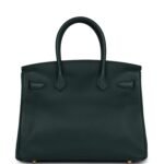 This Birkin is in Vert Tropical Veau Jonathan leather with gold hardware and features tonal stitching,front flap, two straps withcentertoggle closure, clochette with lock and two keys, and double rolled handles.