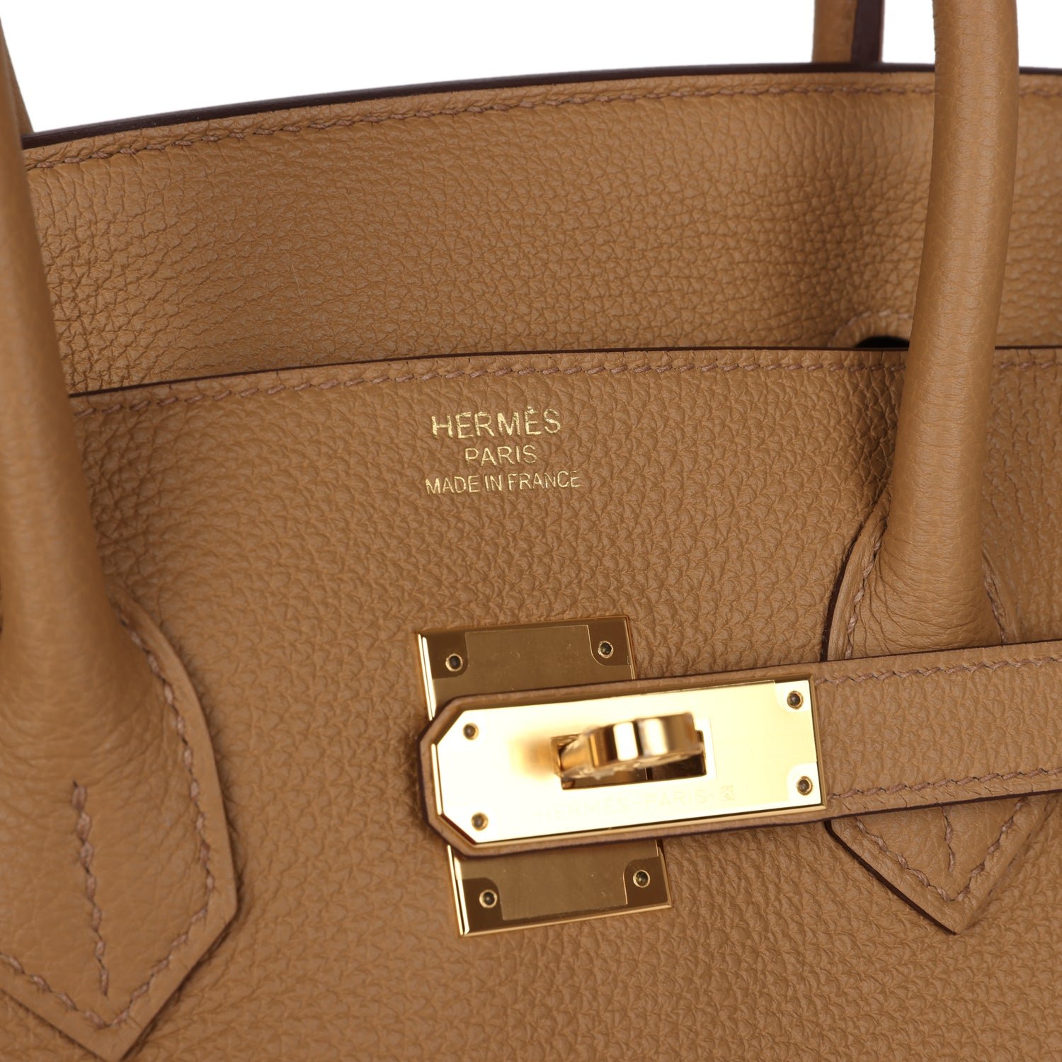 This Birkin is in Biscuit togo leather with gold hardware has tonal stitching,front flap, two straps withcentertoggle closure, clochette with lock and two keys, and double rolled handles.