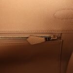 The interior is lined withBiscuit chevre and has one zip pocket with an Hermès engraved zipper pull and an open pocket on the opposite side.