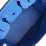 The interior is lined with Bleu France chevre and has one zip pocket with an Hermès engraved zipper pull and an open pocket on the opposite side.