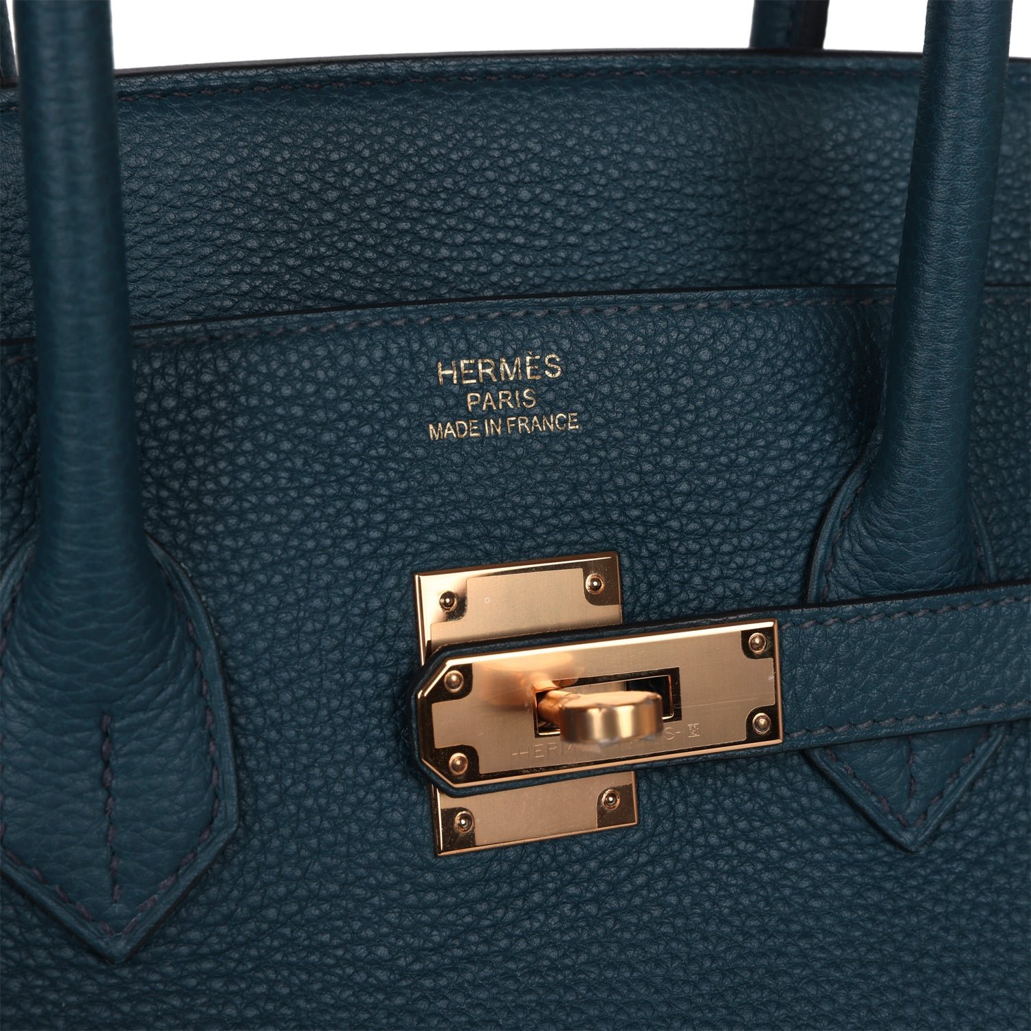 This Birkin is in Vert Rousseau togo leather with gold hardware and has tonal stitching,front flap, two straps withcentertoggle closure, clochette with lock and two keys, and double rolled handles.