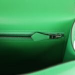 The interior is lined withBamboulambskin and has an open pocket on the front wall, a center divide, and a slit pocket on the back wall.