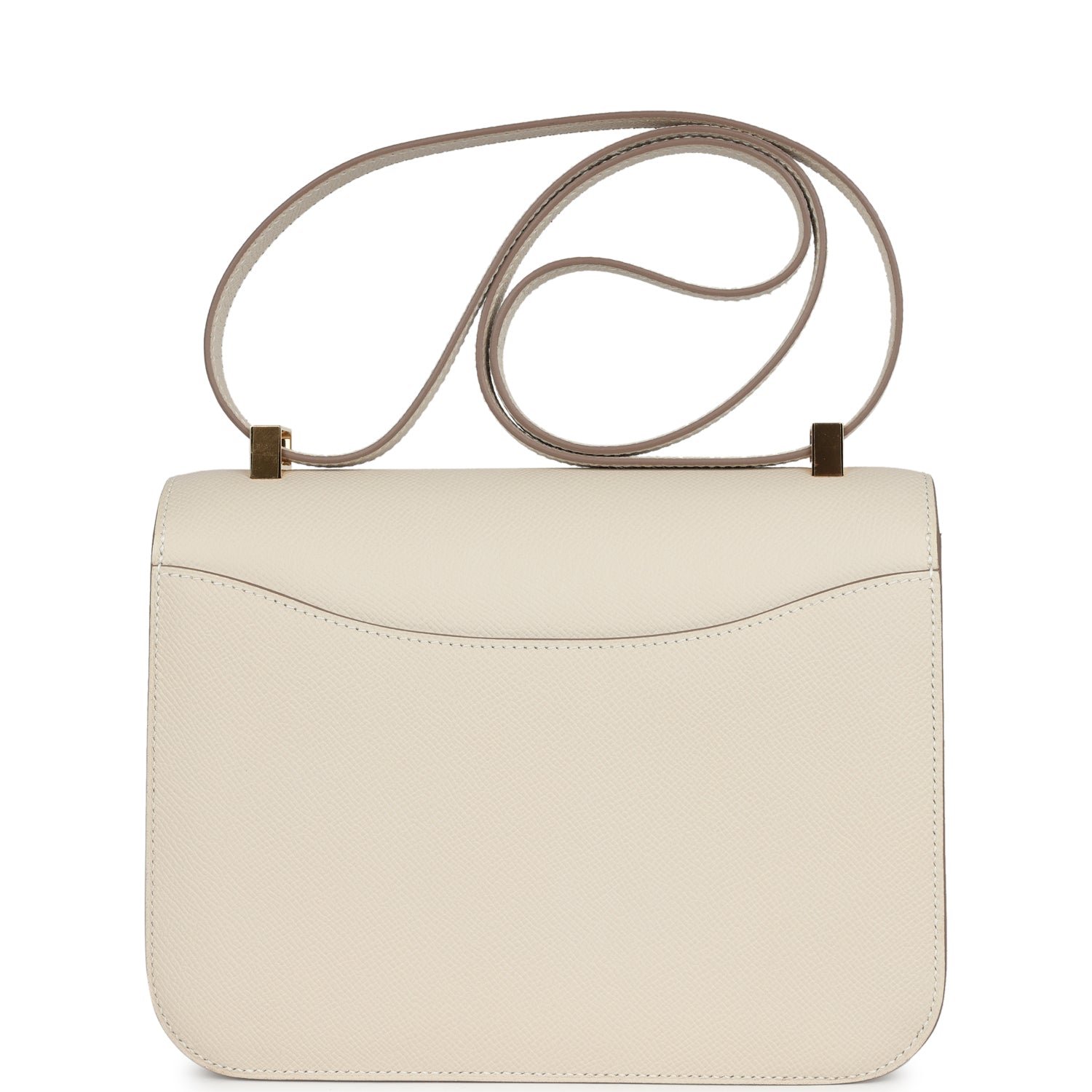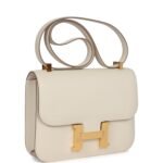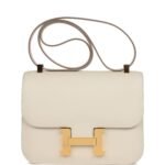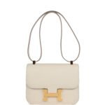 This Constance is in Craie epsom leather with gold hardware and has tonal stitching, a metal “H” snap lock closure and adjustable shoulder strap.