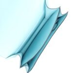 The interior is lined with Bleu Zephyr lambskin and has two open pocket on the front wall, a removable mirror, a center divide, and a slit pocket on the back wall.