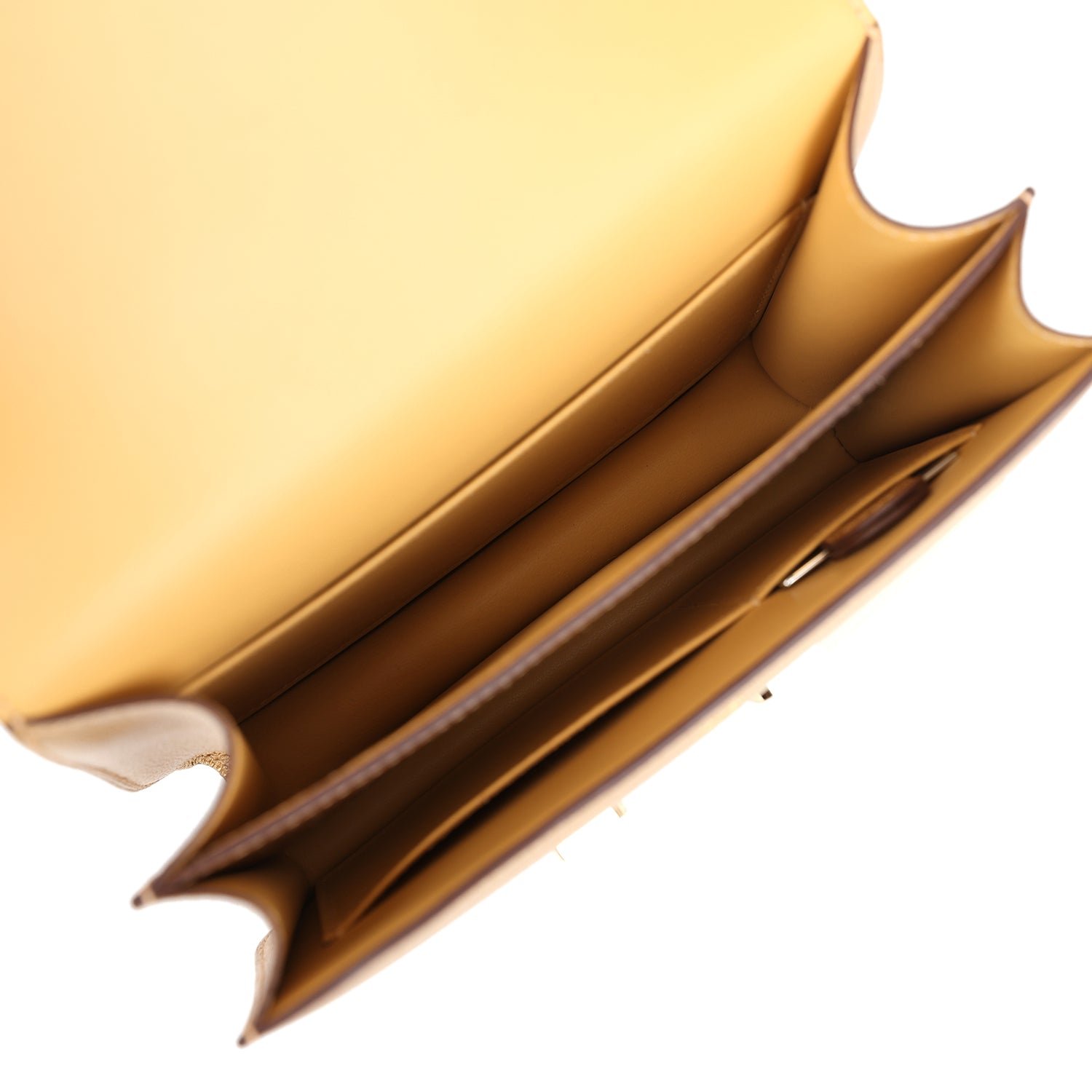 The interior is lined withDore lambskin and has an open pocket on the front wall, a center divide, and a slit pocket on the back wall and a mirror.