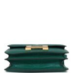 This Constance is of Malachite Matte Alligator Mississippiensis with gold hardware and features tonal stitching, a “H” snap lock closure, and an adjustable shoulder strap.