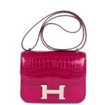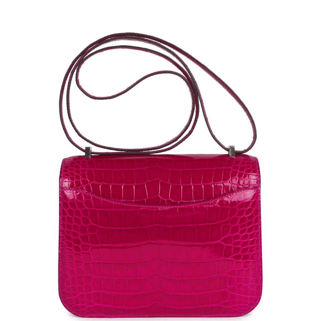 Hermes Constance 18 Rose Pourpre Shiny Alligator Palladium Hardware