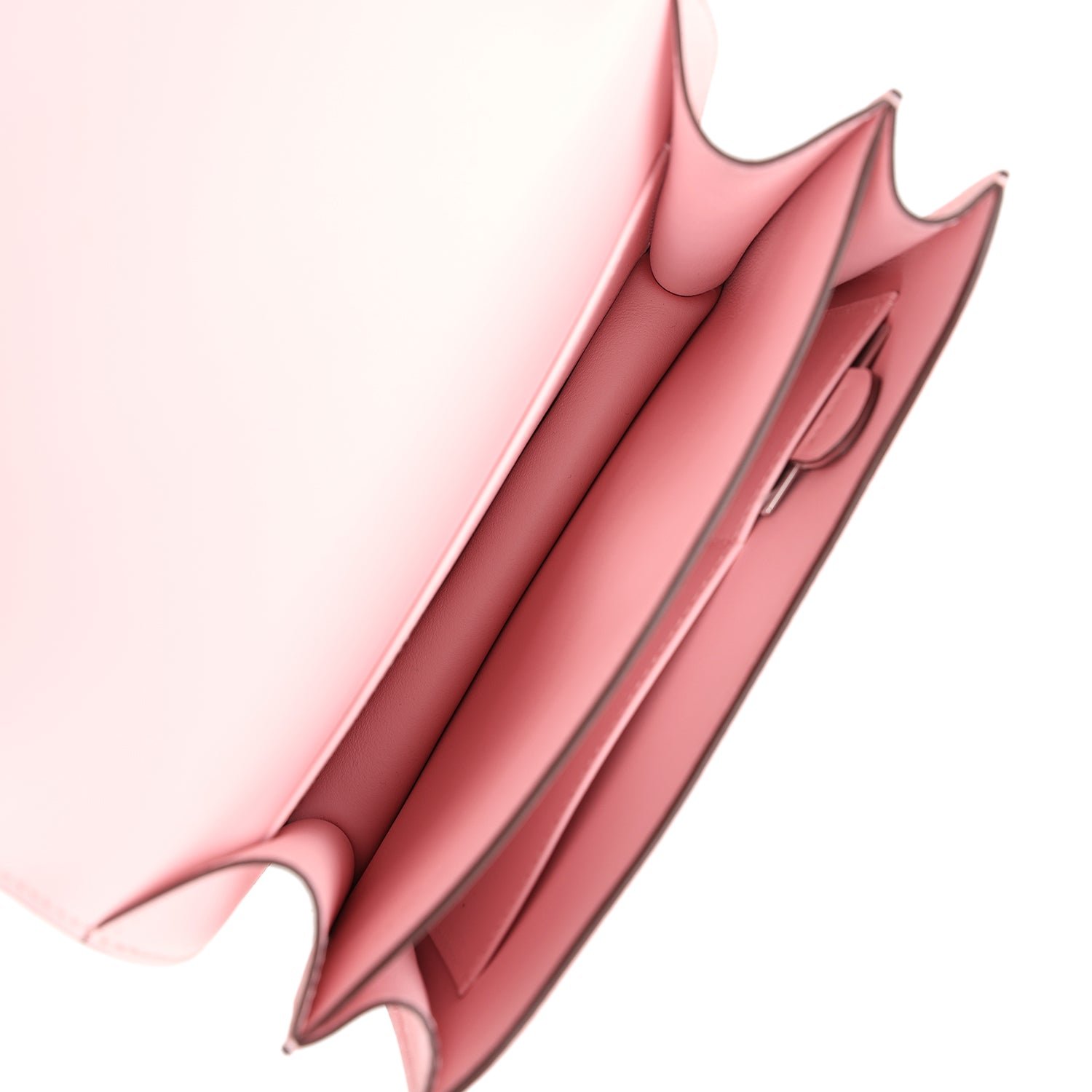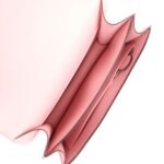 The interior is lined with Rose Sakura lambskin and has two open pocket on the front wall, a center divide, and a slit pocket on the back wall.