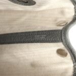 The interior is lined with herringbone toile and Gris Meyer leather with one zippered pocket.